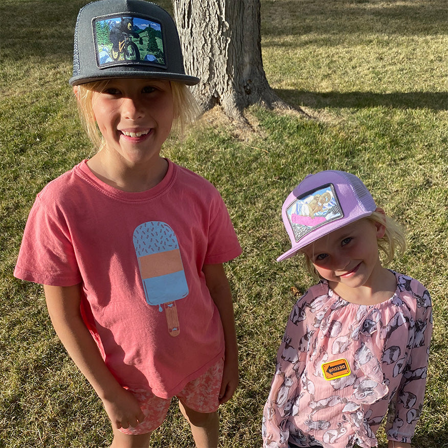 Are you looking for a fun and stylish way for your kids to show off their love for the mountains? We sure were...so we decided to build our own brand! Our hats are designed with the adventurous spirit of mountain living in mind, featuring bold and colorful graphics that capture the essence of the great outdoors. Whether your kids love to hike, bike, ski, snowboard, kayak or fish, these hats are the perfect accessory for any mountain activity.